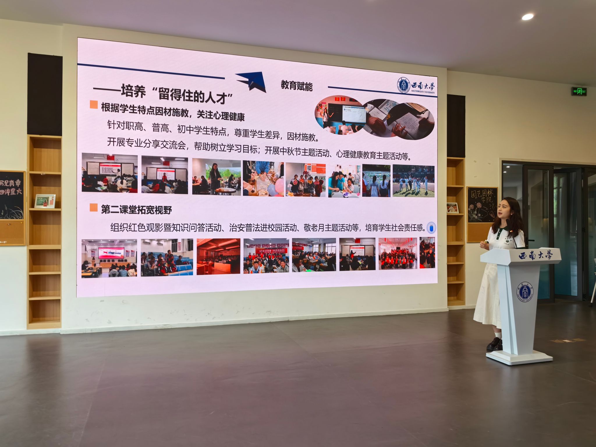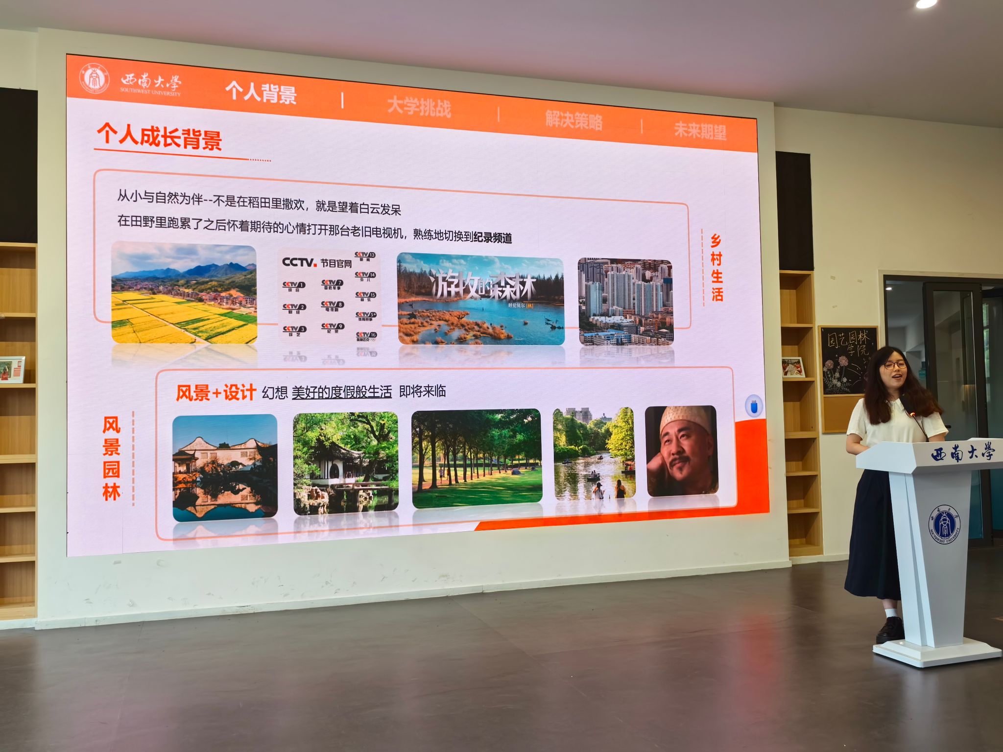 活动现场,两位分享者以“知”与“行”的辩证,诠释农科学子的责任使命和求真创新。学校2023-2024学年优秀研究生标兵、pa视讯官方集团2022级果树学硕士研究生雍顺圆围绕“扎根科研、知行合一”主题,分享枇杷从实验室基因测序到田间嫁接实验的技术攻关历程,她坦言:“科研的终极考场在祖国广袤的田野之中,更在农民眉头舒展的瞬间”;学校2023-2024学年优秀学生标兵、pa视讯官方集团2021级风景园林专业本科生陶姝羽以“教育赋能乡村振兴”为主题,鼓励同学们学好专业知识,洞察专业之美,以专业之美成就乡村之美、青春之美,用扎扎实实的专业知识解决实实在在的“三农“问题。