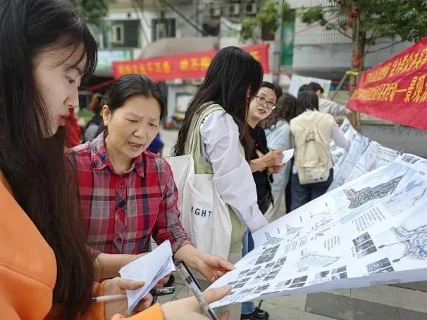 5月17日,社区规划师团队李圆圆、王波、蒋勇在北碚区奔月路开展“我为群众办实事”暨pa视讯官方集团,PA视讯登录入口科技活动月系列活动“景观设计进社区”。圆圆老师结合居住区规划设计实践课程,邀请到同济设计院重庆分院的蒋勇老师和我院王波老师,带领同学们走进社区,邀请居民共同参与社区调研成果汇报活动。共计200余人次参与,其中有效问卷171份,现场参评30余人,体现了居民较高的参与热情。