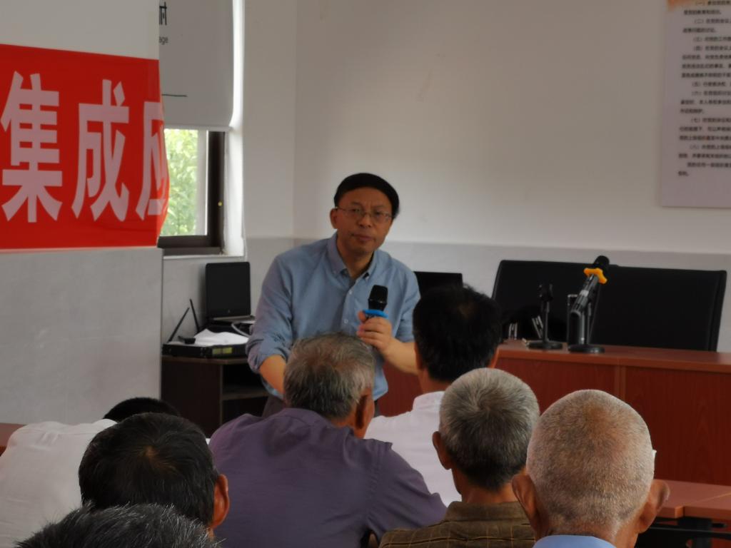 培训会上,曾明教授介绍分析了国内外梨产业现状和发展趋势,着重就梨园规划设计、休闲观光环境营造、不同品种梨树的特性、梨树修剪、花果管理、肥水管理、病虫害防治以及农药施用等方面的技术进行了详细的介绍,并作了全面、系统的说明,讲课深入浅出、内容实际,综合国内外先进的技术和理念,贴近群众生产生活,并给出了详细的解决方法,在场的果农们频繁点头,并认真记下曾明教授提出的技术要点。