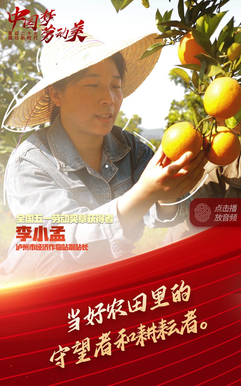 她,朴素平凡、穿梭在田间地头,扎根农业十余年,主动服务农业产业发展;她,切实解决生产技术难题,全力提升农业科研技术水平,在希望的田野上绽放青春力量。她就是2022年全国五一劳动奖章获得者、泸州市经济作物站副站长、正高级农艺师、我院2011届优秀校友李小孟。