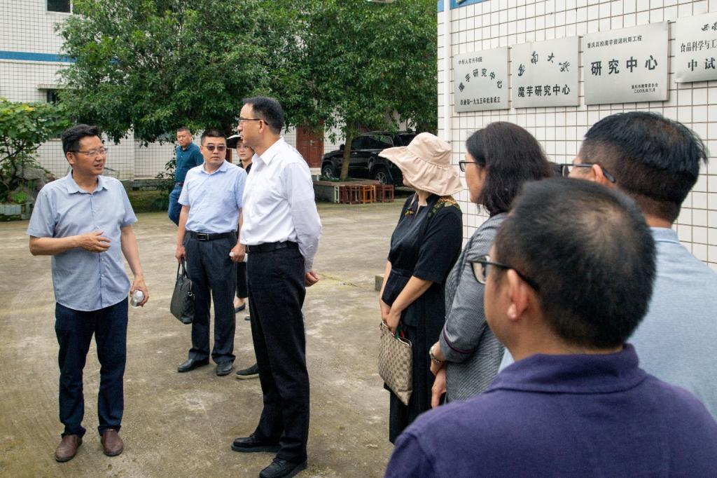 2022年6月11日,重庆市政府外办党组成员、副主任冯子敏,亚洲处处长徐胜、计划财务处处长廖芳、史迪威研究中心主任陶燕、亚洲处四级调研员徐志鹏一行专程调研PA视讯登录入口魔芋研究中心。PA视讯登录入口继续教育学院党总支书记谭琳,国际处副处长张俊和学校党政办保密委员会办公室副主任万劲,pa视讯官方集团院长宋洪元、副院长郭启高陪同调研。
