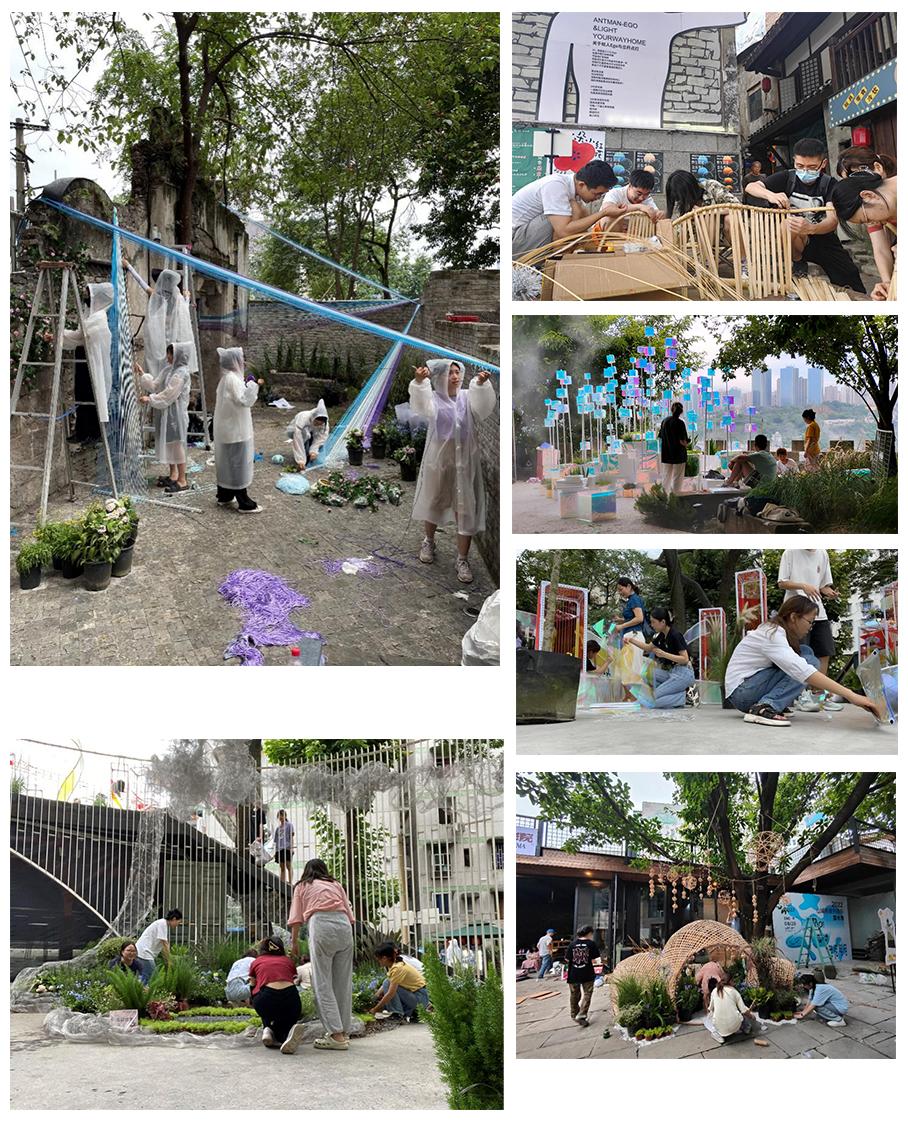 “花园建造节”建造展览活动是结合课程教学而举办的创新性实践活动,旨在通过材料建构和艺术表达相互交叠运用的建造体验,提高动手能力,弘扬工匠精神。花园建造实践能够激发学生的学习热情和创造性,开发设计潜能,以此促进理论与实践结合,提升学生的团队合作能力,培养富于想象力和创造精神的设计人才。