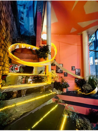 设计理念:在山城巷中寻寻觅觅,于仁爱墙垣静默独立。于雨中来,于晴时去。由丝线塑造梦幻流转的空间中,一端是过去,一端是现在。在丝线的光影交织与植物的色彩变幻中,感受历史的变迁、感受从废墟到新生的时空流转与情感递进;旧与新转折、交织,带来希望与治愈的力量,与此同时、也带来梦幻般的织影秘境。