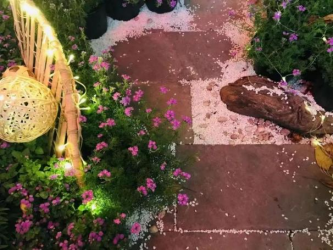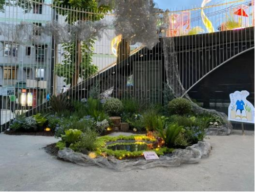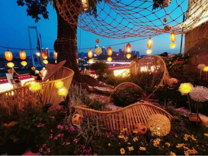 设计理念:本次设计对重庆的江水、桥梁、别具特色的街巷风貌进行了解构重组,其花园空间的主体灵感来自于嘉陵江千厮门大桥,配景是一组高低错落的方格网架,勾勒出迷雾下的山城轮廓。通过灯光设计,勾勒独属于重庆的夜之绚烂;用风铃的悦耳声响,模拟江水涛涛之声;将花同构造相结合,呈现出别样的花卉之美。通过本设计,实现形与色的碰撞,声与影的结合,展现山城巷独特魅力,与观者共赴沉浸式文化体验之约。