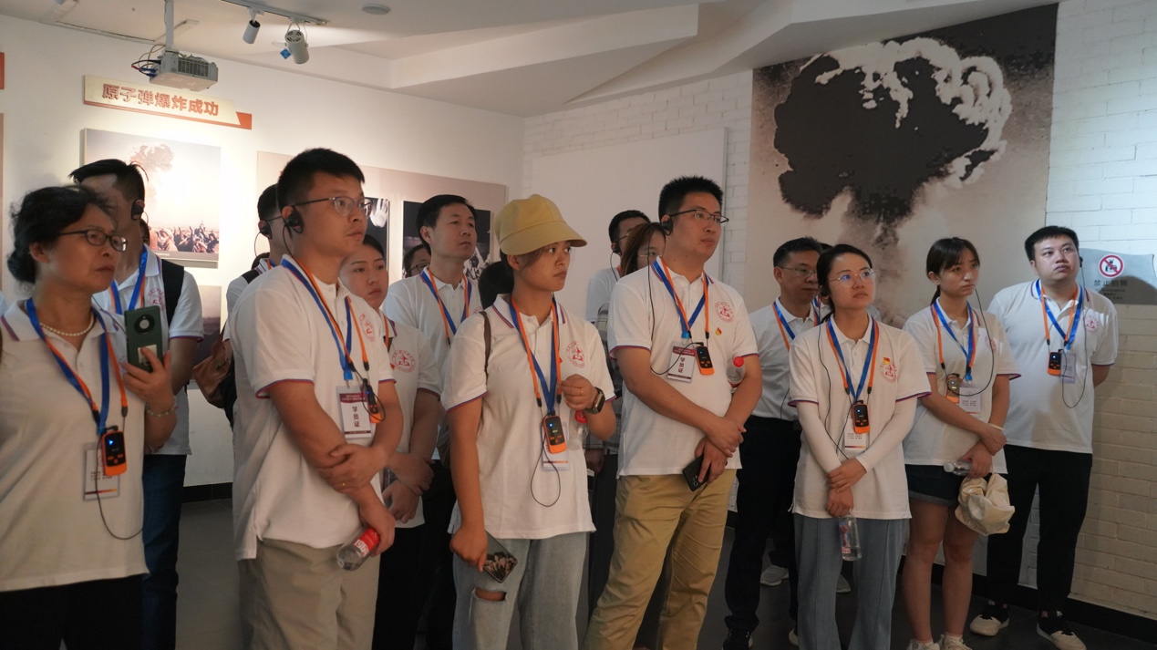 6日上午,现场教学环节,全体学员实地参观了两弹历程馆、邓稼先旧居、廉政教育家风馆、三防教育馆等展馆。期间,学员们瞻仰了“两弹一星”功勋邓稼先旧居,向邓稼先铜像敬献花篮,深切缅怀老一辈科学家,重温入党誓词。随后,现场学习了关于王淦昌、邓稼先、彭桓武、钱学森、王大珩家风的《忠厚传家久 诗书继世长》主题微党课。下午,学员们聆听了中物院原副院长尚林盛、两弹结合试验亲历者赵符修的《不忘初心跟党走 “两弹一星”铸国魂——“我们那些年”》现场访谈教学,观看情景教学《记忆里的“两弹一星”》,培训班成员了解了我国核武器发展的峥嵘岁月和艰苦奋斗历程,深切感受“热爱祖国、无私奉献、自力更生、艰苦奋斗、大力协同、勇于登攀”的“两弹一星”精神,深刻感悟到老一辈科技工作者“干惊天动地事,做隐姓埋名人”的家国情怀,在追寻功勋足迹中,坚定理想信念,砥砺奋斗之志。