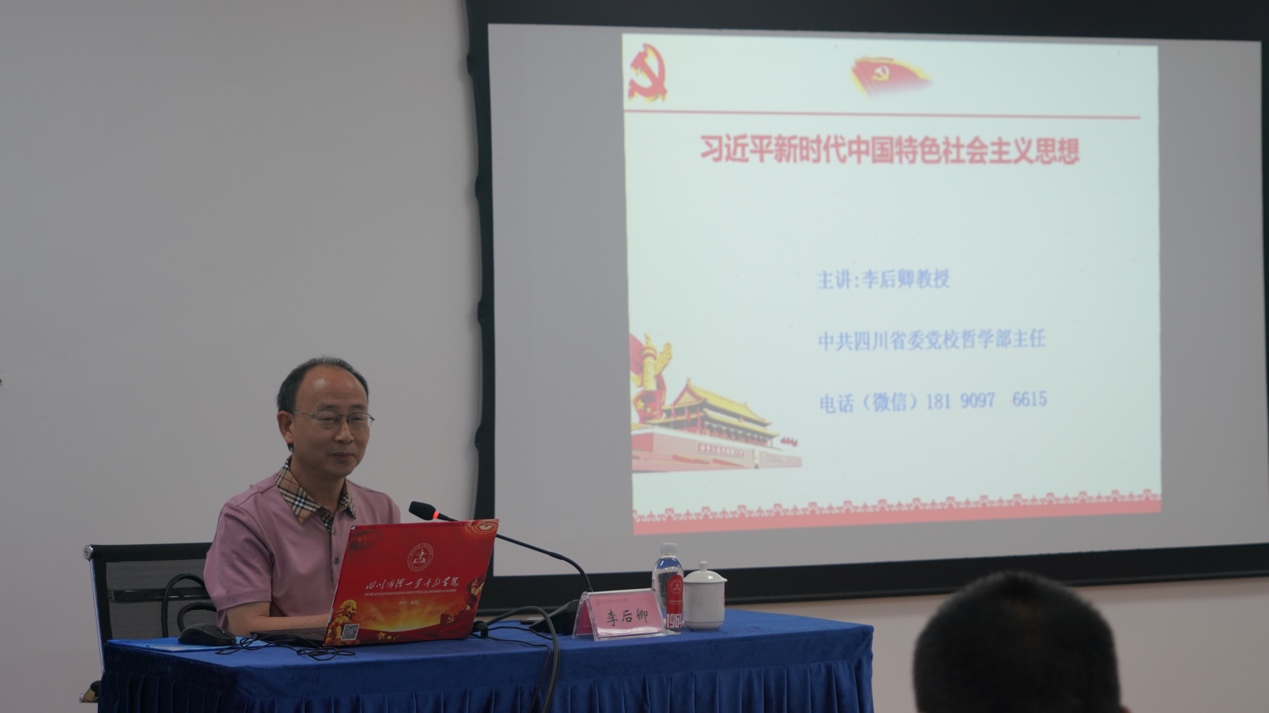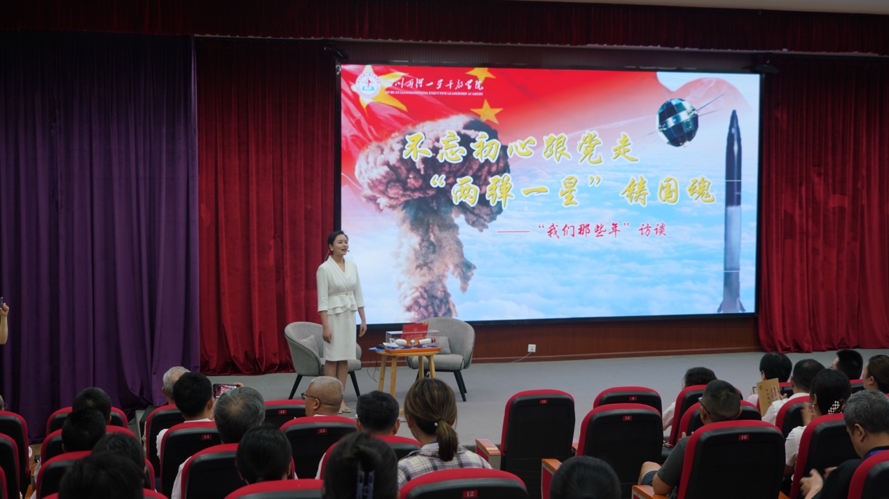 5日下午,开班式在“两弹一星”干部学院奋斗楼215室举行,学院院长宋洪元主持开班式。“两弹一星”干部学院副院长邓诚致辞,她对本次培训学员的到来表示欢迎,并介绍了本次培训采取专题教学、现场教学、访谈教学、情景教学等多种方式,紧扣“两弹一星”党史教育主题,突出“两弹一星”精神教育。学院党委书记潘玉锋表示,“两弹一星”精神是中华民族的宝贵精神财富,激励和鼓舞了几代人中国人,希望大家提高思想认识,珍惜学习机会。随后,四川省委党校哲学教研部主任、教授、硕士生导师李后卿为学员作《习近平新时代中国特色社会主义思想解读》专题授课,从习近平新时代中国特色社会主义思想的“源、知、行、果、思想精髓和灵魂、学习方法”等六个维度展开,着重对党的二十大精神做系统全面、清晰透彻的解读。