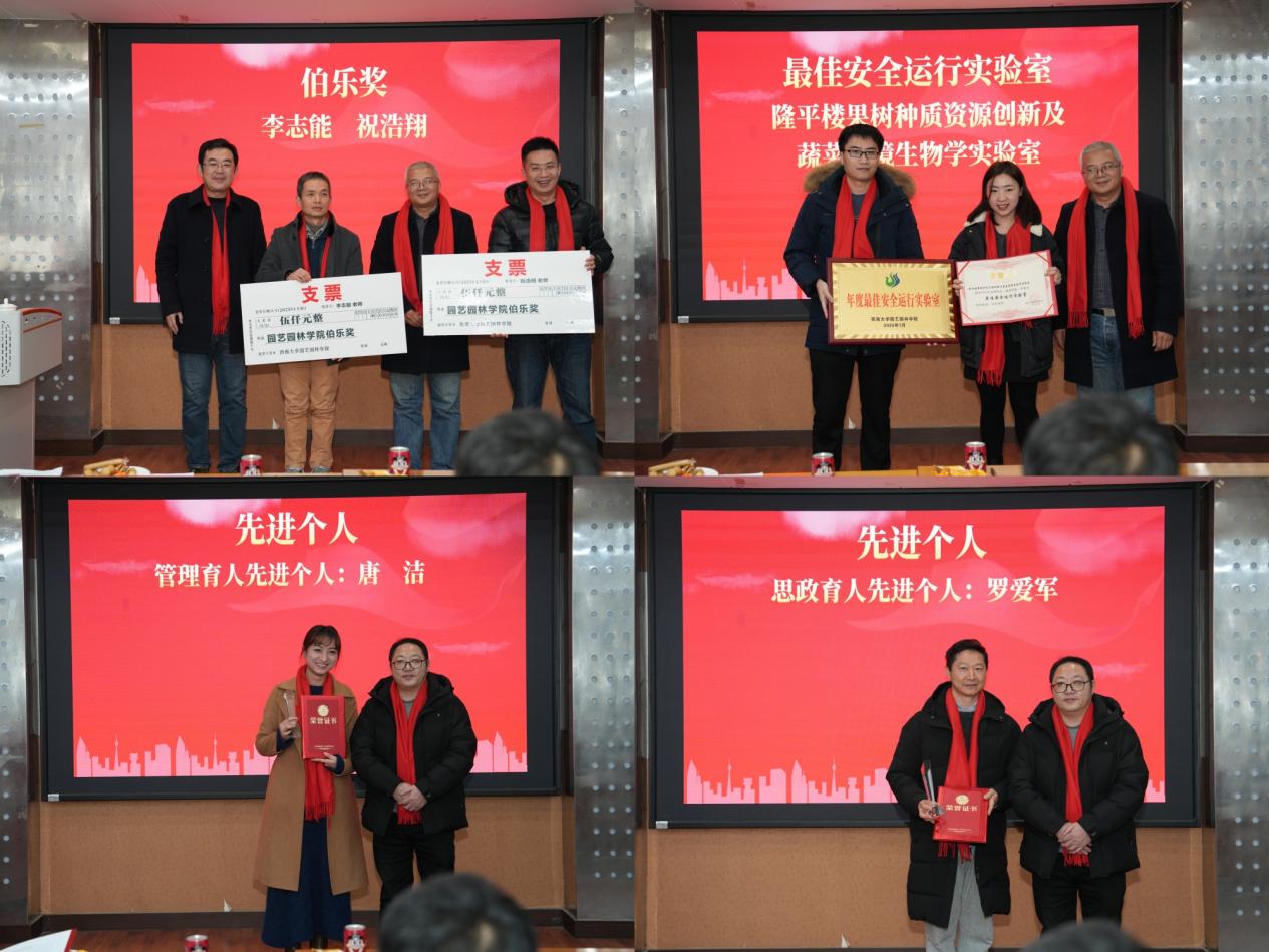 接下来,学院对在过去一年中表现优秀的集体和个人进行了表彰。管理育人先进个人和思政育人先进个人在学生管理和思想政治教育方面做出了积极贡献,他们的工作为学生的成长和发展提供了有力保障。荣誉之星的评选更是备受关注,成长之星、奉献之星、开拓之星、领航之星分别代表了不同领域的突出表现,他们的事迹鼓舞激励全体教职工不断保持奋进、追求卓越。最佳安全运行实验室在实验室管理和安全保障方面表现出色,为学院的教学和科研工作提供了良好的实验环境。伯乐奖是对学院人才引育工作做出突出贡献的教师的肯定。最佳贡献奖包括教学贡献奖、科研贡献奖、社会服务贡献奖,他们在各自领域的重要成果,为学院的发展树立了榜样。学院领导为获奖个人和集体颁发了荣誉证书和奖品,并向他们表示祝贺。