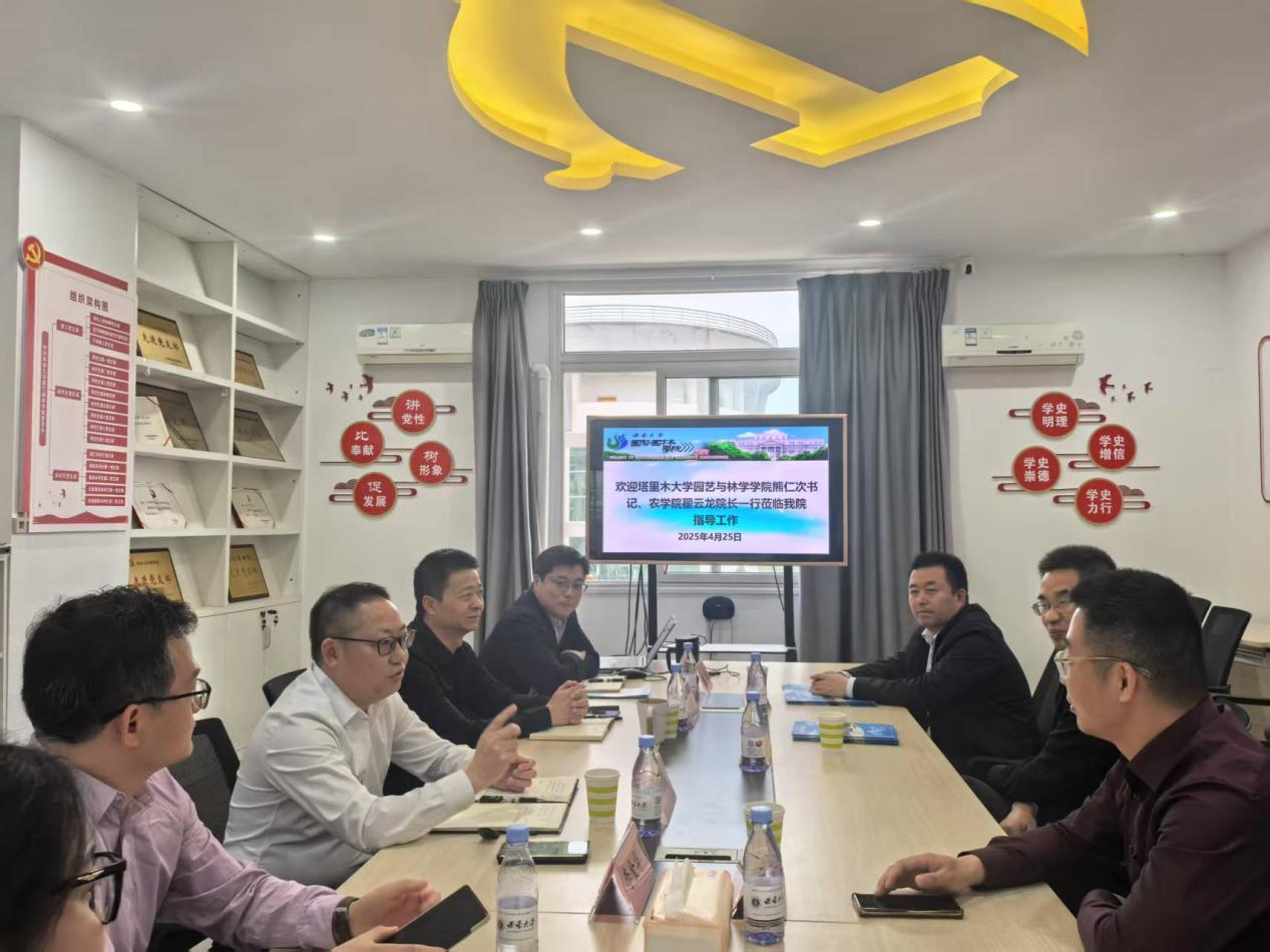 4月25日,塔里木大学园艺与林学学院熊仁次书记、农学院翟云龙院长一行莅临我院,与学院领导和教师代表进行了深入的交流座谈。会议由学院党委书记周建华主持。