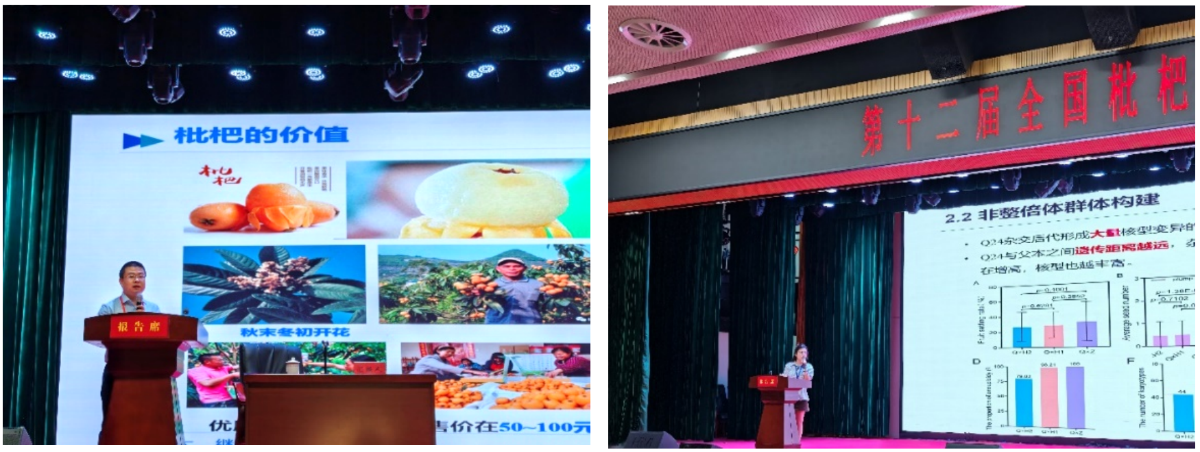 随后,景丹龙副教授从三倍体无核枇杷果实熟期和品质调控机制研究方面作了大会报告。学院王海燕博士生、雍顺圆、郭仕琪硕士生分别从枇杷三倍体创制非整倍体及非整倍体的全基因组表达变化、枇杷叶片发育、枇杷叶际微生物群落机制研究等内容作了学术汇报,充分展示了学院在枇杷基础研究和应用研究方面的科研实力。