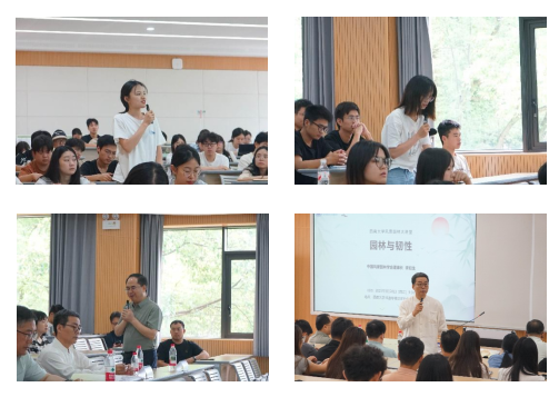 在讲座的互动交流环节,同学们提出“在借鉴公园城市理念推进乡村振兴时,如何关注城市与乡村需求的异同,避免出现‘水土不服’”以及“当前百姓对园林碳汇感知较弱,如何将碳汇价值转化为百姓可感知的美好生活”等问题。针对公园城市理念在乡村振兴中的落地问题,主讲嘉宾指出需精准把握城乡需求差异,一是聚焦需求差异与动力机制,二是坚持传统村落保护与更新并重,三是摒弃城市化营造方式。对于百姓对园林碳汇价值感知不足的问题,要以科技手段与公众参与推动价值转化,一是明确园林碳汇的行业定位,二是深化数字化工具应用,三是推动公众参与。最后,嘉宾还强调,无论是乡村振兴还是园林碳汇实践,均需立足“以人民为中心”的发展思想,让生态价值真正转化为百姓可感知、可参与、可受益的美好生活场景。