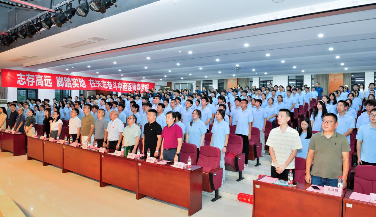 国歌响起,师生起身肃立,见面会由此拉开序幕。歌声铿锵饱含深情,新生神情庄重,尽显青年担当。此举不仅是爱国主义教育重要环节,更助新生筑牢思想根基,感受集体力量与自豪,为其注入了不断向前、奋力拼搏的动力。