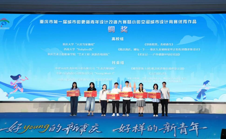 近日,由共青团重庆市委、市规划自然资源局等多部门联合主办的“重庆市第一届城市微更新青年设计改造大赛”圆满落幕。学院参赛团队的作品《路边酒店,摊玩一下——重庆九龙坡杨家坪正街街道微更新设计》在全市200支参赛队伍中脱颖而出,荣获大赛铜奖并获奖金,这充分展现了学院在城乡空间更新领域的教学成效与青年学子的创新活力。