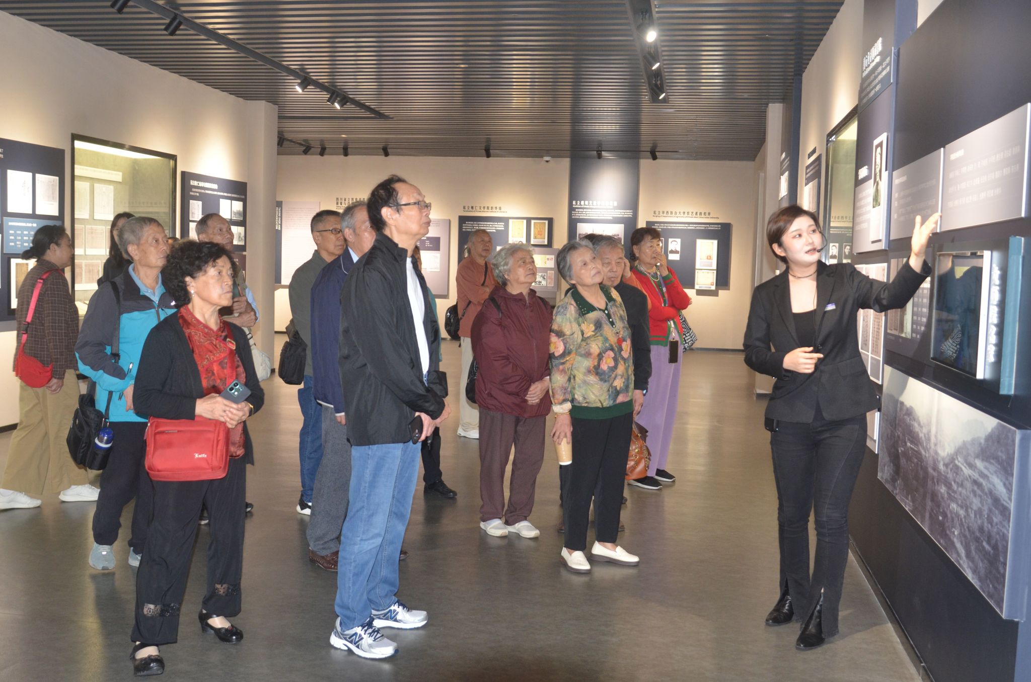 下午,在学院老师的陪同下,校友们兴致勃勃地游览了校园。从焕然一新的教学楼到生机盎然的实验基地,从风景如画的林荫道到设施完善的运动场馆,每一处变化都让校友们驻足赞叹,不时拿出手机拍照留念,记录下母校的崭新风貌。随后,校友们走进校史馆,在一幅幅珍贵的老照片、一件件承载历史的实物前,共同回顾学校的发展历程,感受母校深厚的文化底蕴与精神传承。