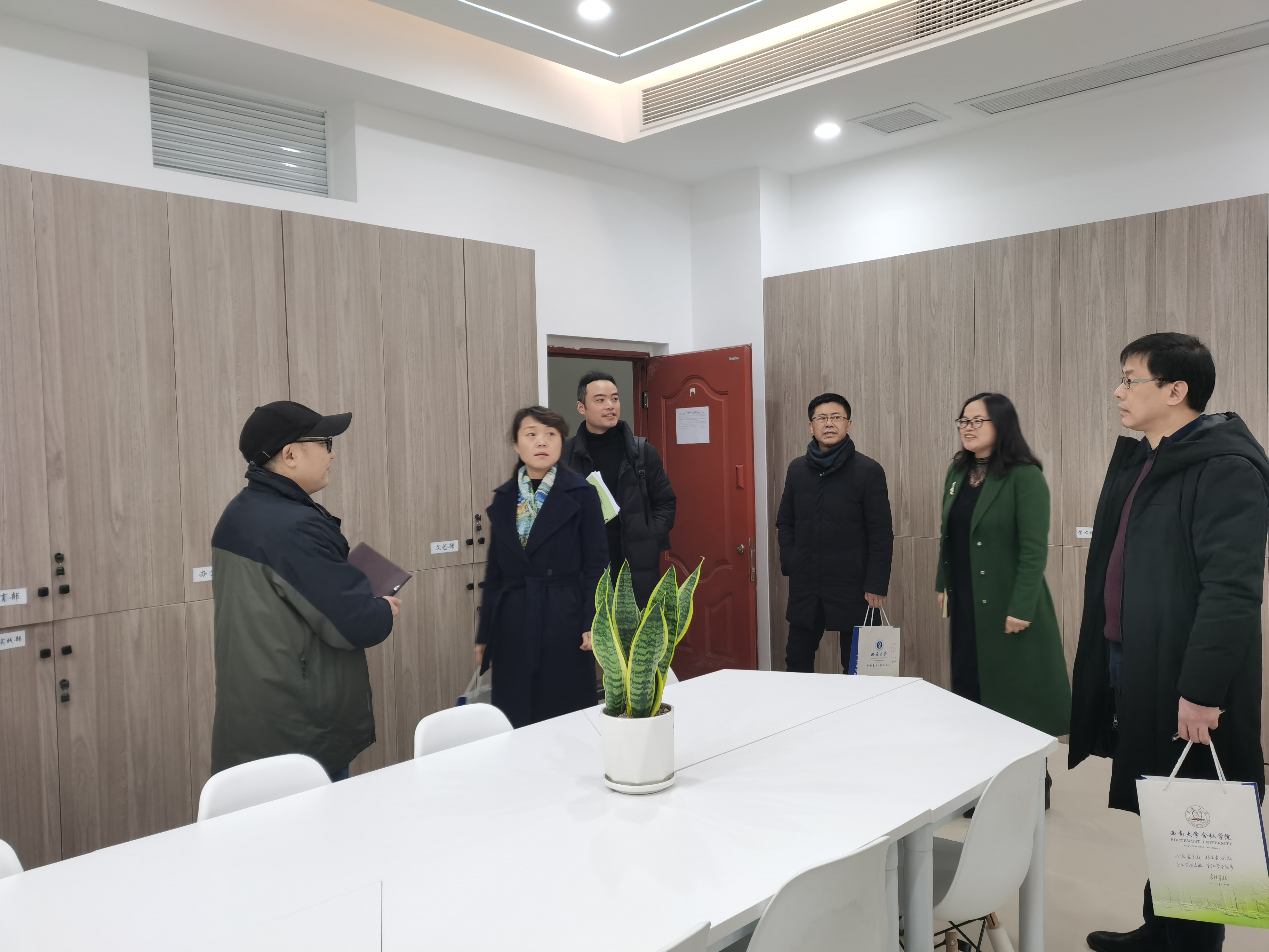 2021 年 1 月 18 日,学校大学生创客空间评估组专家莅临pa视讯官方集团实地走访评估工作。创新创业学院副院长封云、实验室建设与设备管理处副处长罗书强、大学科技园管理中心副主任刘双全、校团委副书记罗亮、pa视讯官方集团党政领导、学工办全体工作人员及孵化团队负责人等参加评估。