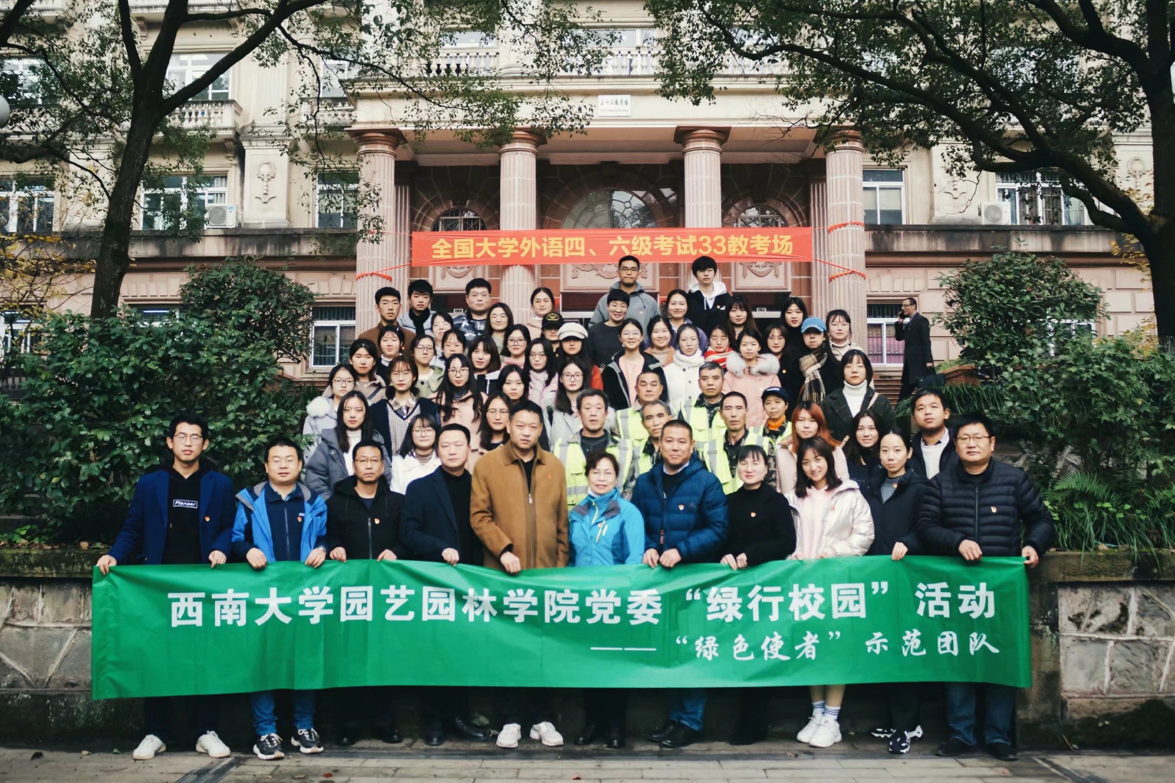 为学习贯彻习近平新时代中国特色社会主义思想,更好地发挥党支部的战斗堡垒和党员的先锋模范作用,园艺园林学院党委组织学院党委委员、本科生园林党支部和本科生园艺党支部成立“绿色使者”示范团队,联合后勤集团党委于12月11日下午开展“绿行校园”活动,对共青团花园植被进行修枝、整形和施肥等工作。pa视讯官方集团党委书记李雪梅、后勤集团副总经理王殊、pa视讯官方集团师生党员及后勤集团工作人员共50余人参与此次活动。