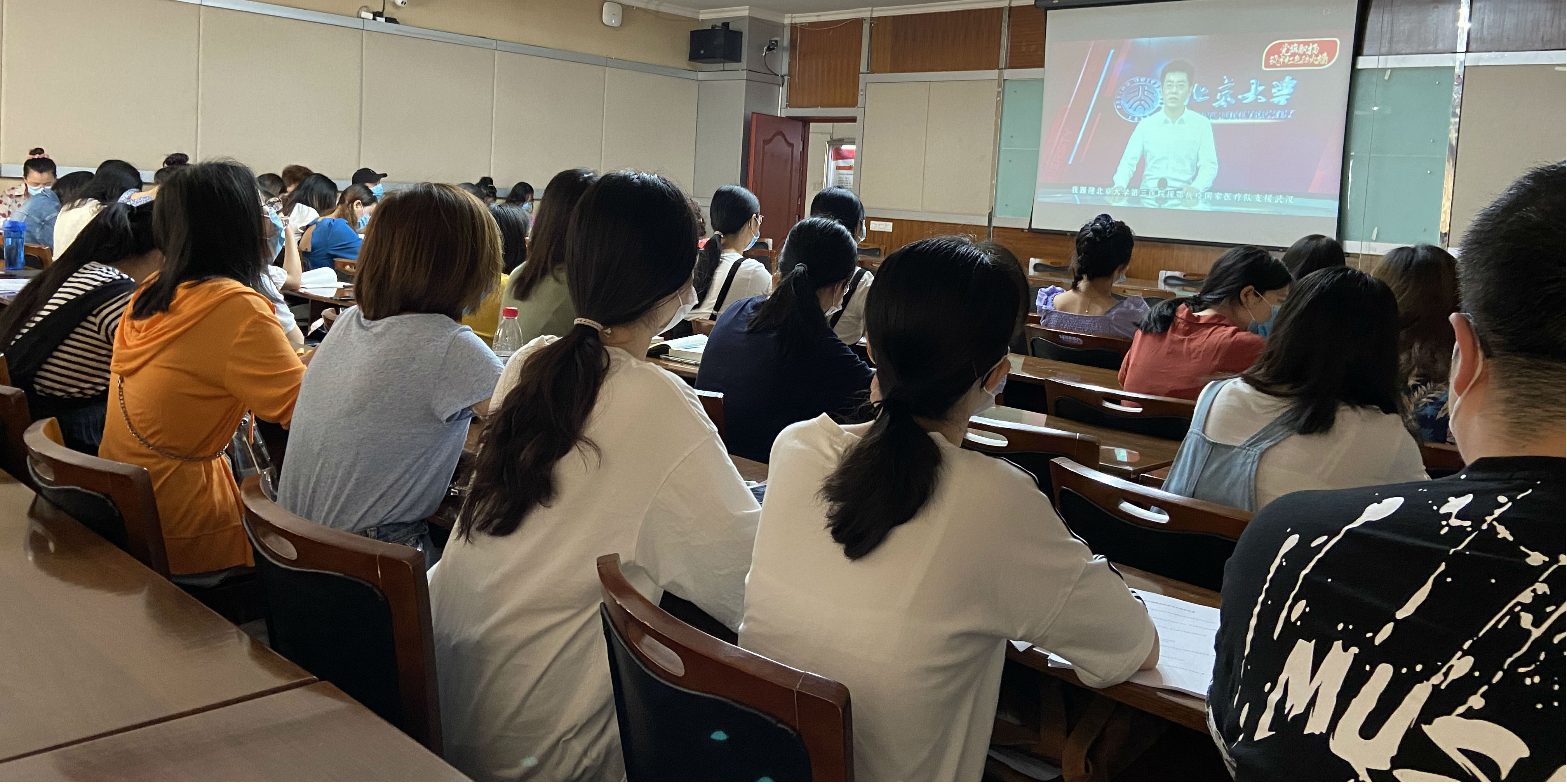 6月19日上午9时,学院党委组织学生党员、发展对象、入党积极分子代表在33教407集中观看了全国首场高校党组织战“疫”示范微党课,随同观看的还有学院党委书记李雪梅,副书记郑莉佳、李小红,组织员张靖悦老师。