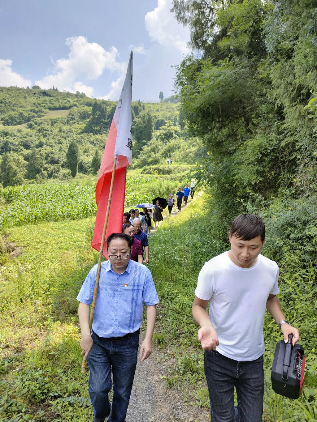 7月5日,党员同志们来到枫香树红一军团二团指挥部旧址,重走长征路安稳段。路上,党员同志们扛着党旗,顶着烈日,体味红军二万五千里长征的艰辛。随后一行人来到石壕红军烈士墓,由李雪梅书记领誓在党旗下重温入党誓词。党员们怀着无比沉痛的心情向牺牲的革命先烈默哀并敬献花圈。
