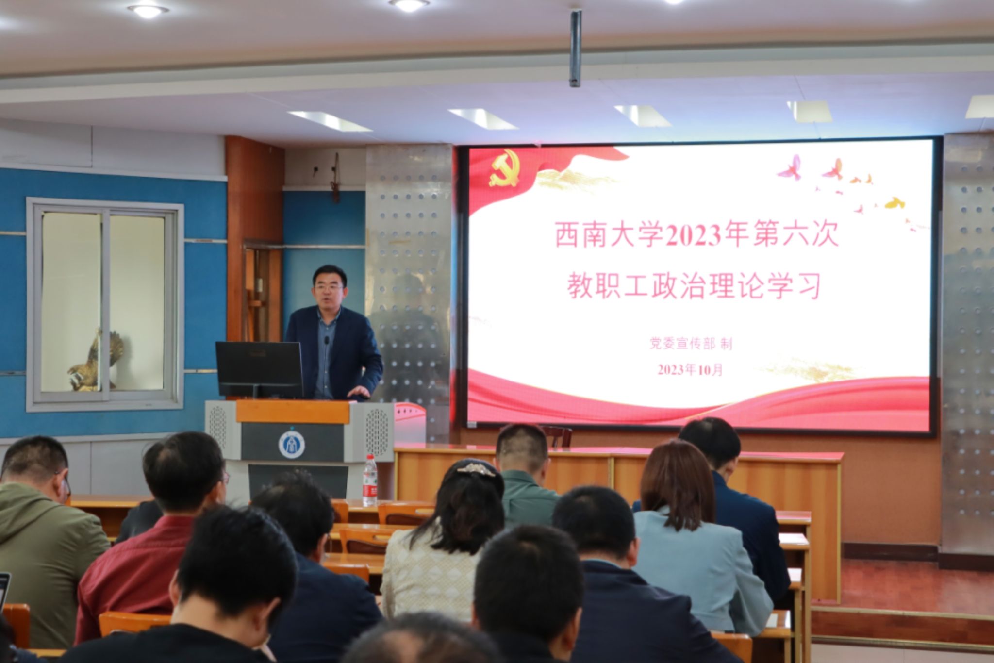 10月13日下午,学院全体教职工在33教406教室开展本年度第六次政治理论学习活动。会议由学院党委书记潘玉锋主持。