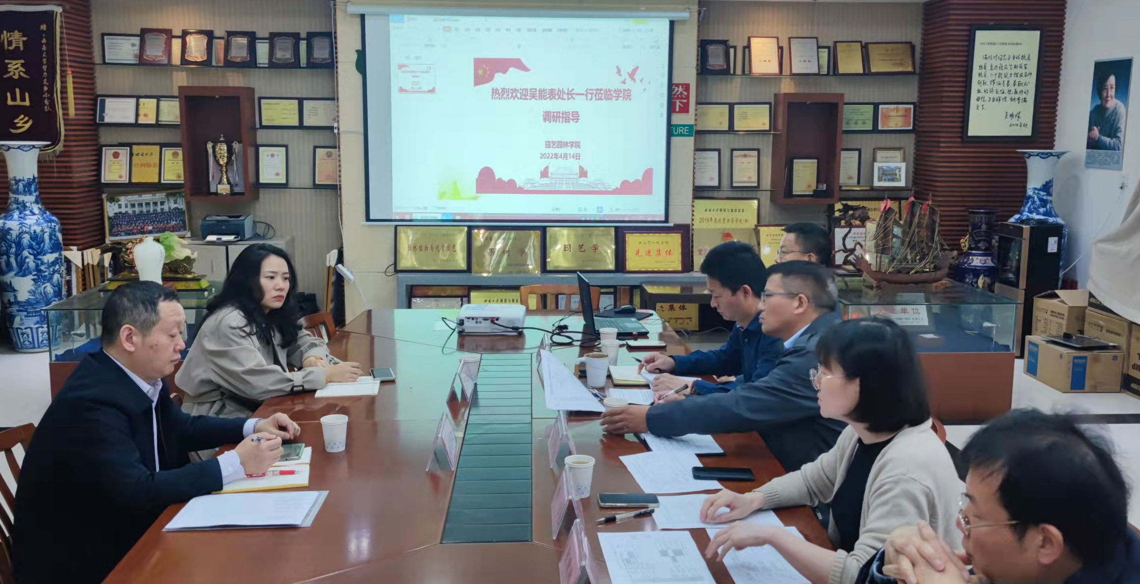 会上,学院院长宋洪元首先代表学院对吴能表处长一行表示热烈欢迎,衷心感谢教务处对学院工作的支持和帮助。随后,相关专业负责人详细介绍了园艺国家一流本科专业、园林国家一流本科专业和风景园林重庆市一流本科专业相关建设情况。周建华副院长对3个专业建设情况做了进一步的说明,阐述了学院推进本科专业建设工作的思路及举措,汇报了面临的一些现实困难和急需解决的问题。