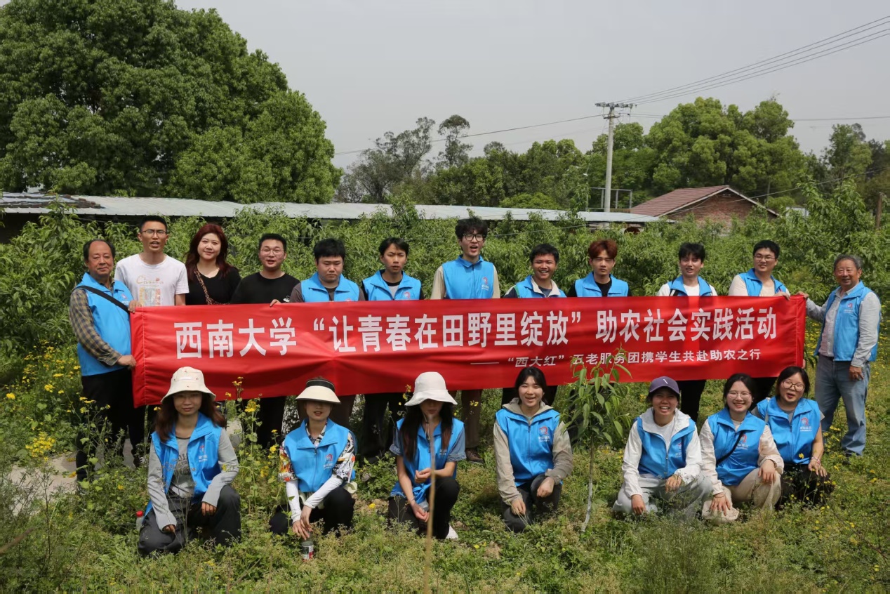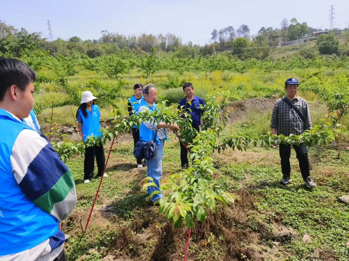 4月16日,学院联合北碚区科学技术协会等单位,在北碚区西山坪村“恒屹果园”开展了“让青春在田野里绽放”助农社会实践活动。PA视讯登录入口关工委副理事长鲜宗广,学院退休教师李晓林,北碚区科协副主席傅建华,科协工作人员陈旭、李娟,学院2021级本科生辅导员余容,园艺专业的本科生、研究生以及“西小晖”学生服务团志愿者共20余人参加活动。