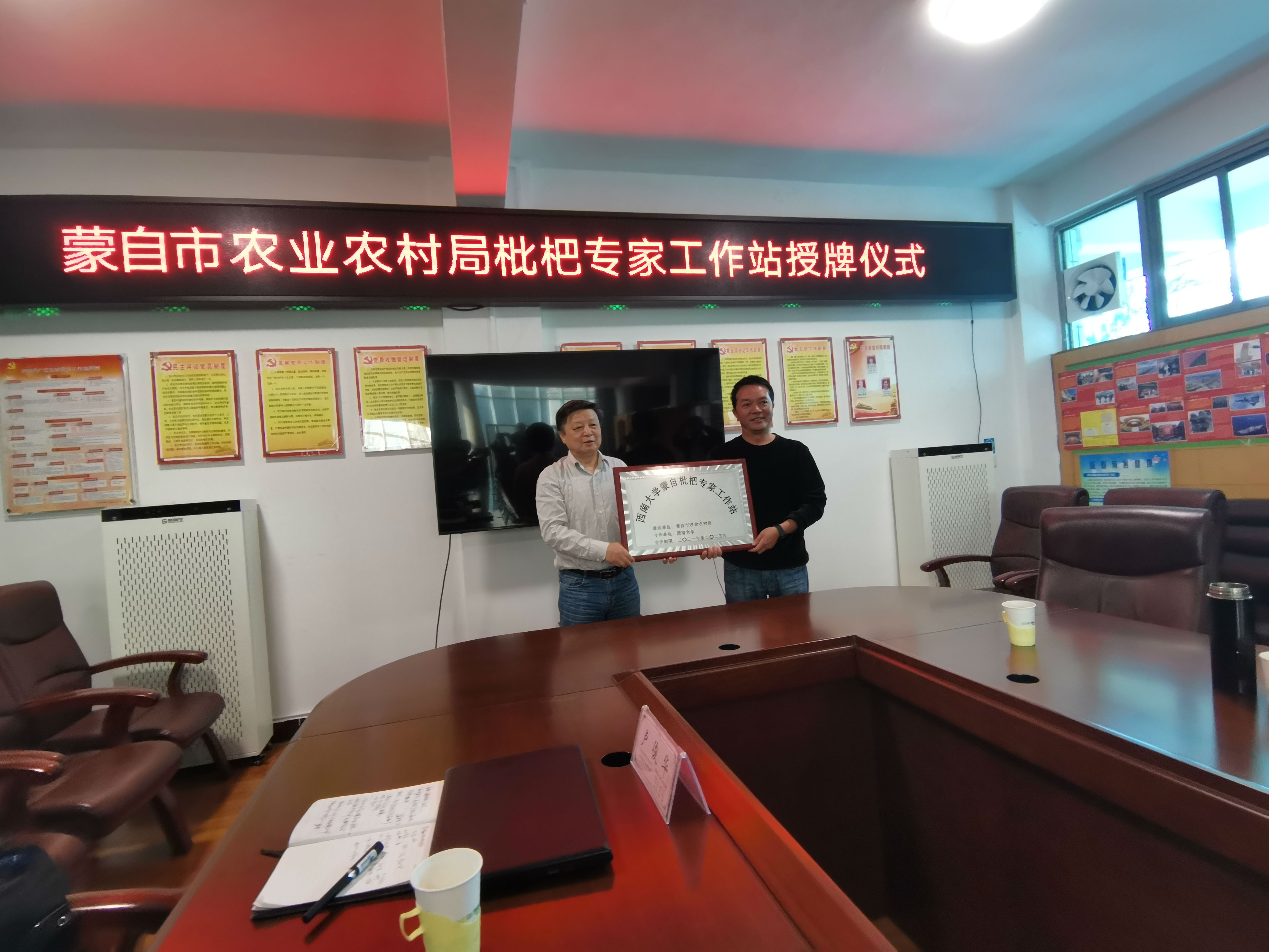 PA视讯登录入口蒙自枇杷专家工作站授牌仪式(左一:梁国鲁研究员)