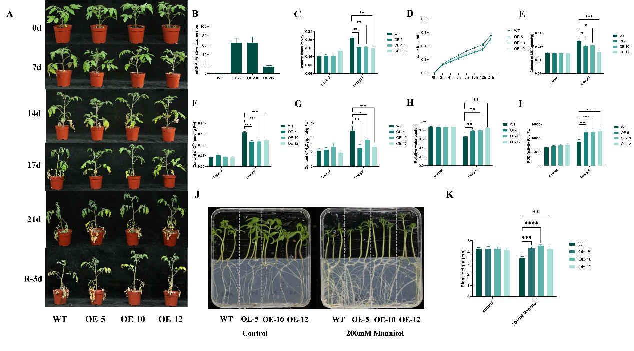 随着全球气候变化的加剧,非生物胁迫对农业生产的影响日益显著。番茄(Solanum lycopersicum L.)作为全球重要的蔬菜作物之一,需水量大,其产量和品质受到干旱胁迫的严重威胁。因此,研究番茄在干旱胁迫下的生理和分子响应机制,挖掘抗旱相关基因,对于提高番茄的抗逆性和保障粮食安全具有重要意义。