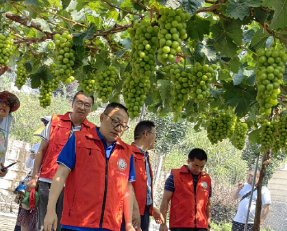 7月18日上午,伴着金色朝霞,特派员们精神抖擞地开始了新一天的“三下乡”活动,经过快1个半小时的车程,来到了学院科技特派员服务最多的渝北区,第一站到达兴隆镇“晚秋·逅”葡萄基地,这里有灯塔、有野花,而最诱人的莫属颗粒饱满圆润、挂满树梢、正值最佳采摘期的各种类型的葡萄。